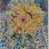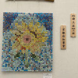 支援センター圭では、障害のある人が応募できる作品展「とっておきの芸術祭」に毎年応募しています。今回は初めてセンターの作品が知事賞を受賞し、12月13日(土)に行われた表彰式に参加しました。今回の作品は、使わなくなったチラシを活用して作成した「ラッキースター」(細長い紙を折りたたんで作る立体的で小さな星)で、大きなひまわりを表現しました。1.5cm角のラッキースターを約1600個、センターのみんなで協力して作成しました。作業中は気が遠くなるほど大変でしたが、完成した作品を目にしたときには、みんなで大きな達成感を味わうことができました。また、知事賞という大変名誉ある賞を受賞したと知ったときは、本当にうれしい気持ちになりました。表彰式には、メンバーさん、ボランティアさん、職員合わせて11名が参加しました。特に制作に深く関わったメンバーさんが代表して西脇知事から賞状を受け取る姿を見て、改めて本当にすごい賞をいただいたのだと実感しました。表彰式終了後には、作品の前で西脇知事と一緒に写真を撮らせていただき、貴重な体験となりました。また、他の出展作品も鑑賞しましたが、どれも個性的で素敵な作品ばかりでした。その中からセンターの作品を選んでいただけたと思うと、さらに嬉しい気持ちになりました。来年に向けても、センターのみんなでアイデアを出し合い、また素敵な作品を作っていけたらと思います。